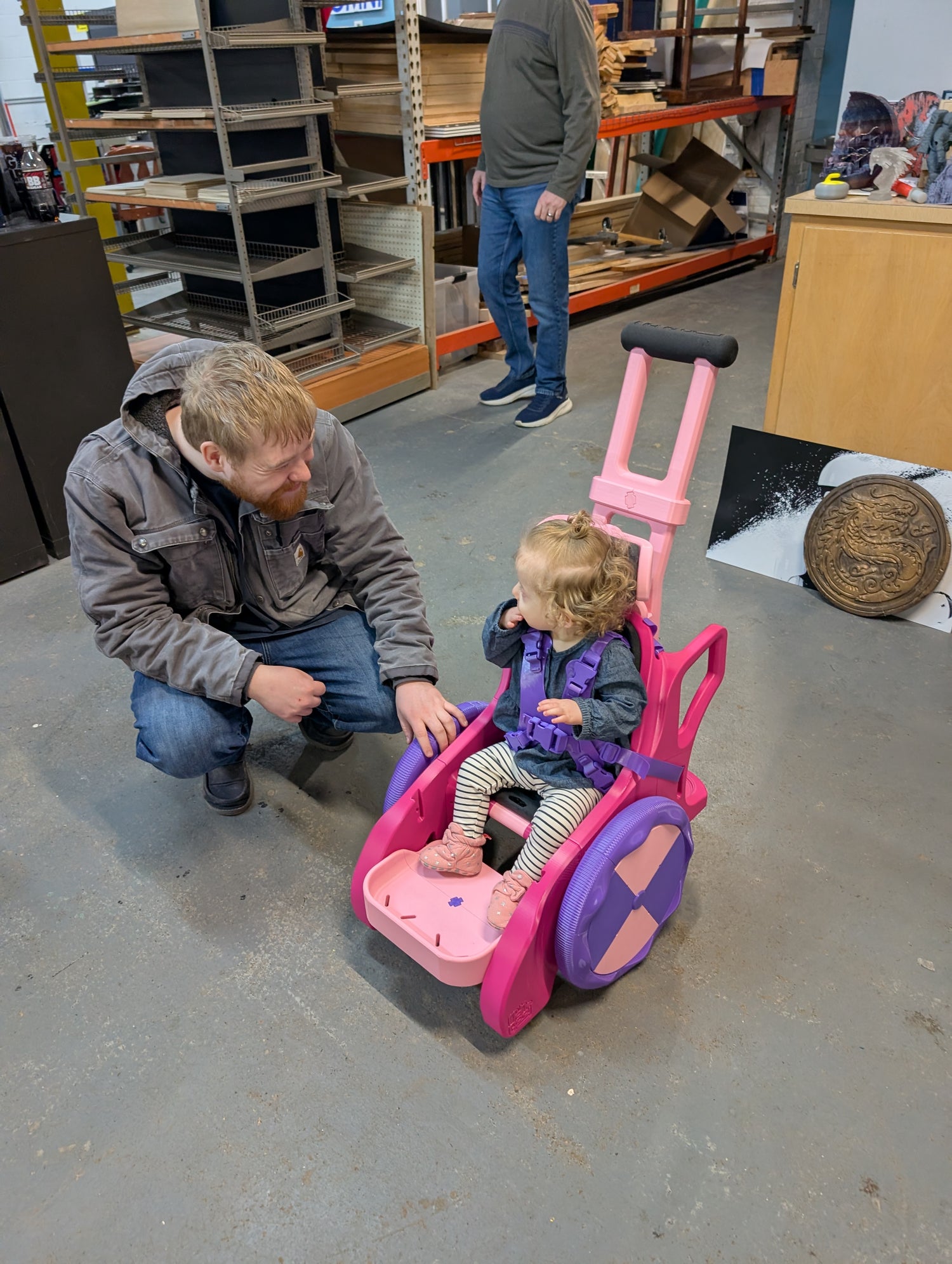 That pink mobility trainer isn't just a device ā it's what happens when a community shows up. Using open-source designs from Make Good, GRM volunteers 3D printed and assembled a custom mobility trainer for Ella, a local toddler whose family needed a solution that commercial options couldn't provide.